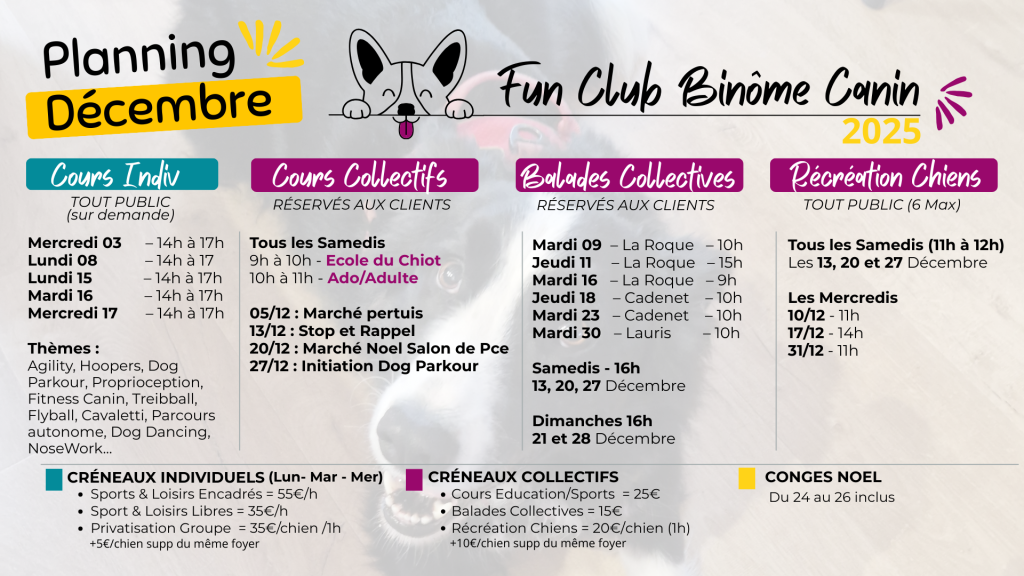 Parce que comprendre ton chien, c’est aussi te former toi ! Ateliers enfants, adultes, clicker-training, prévention morsure, soins coopératifs… Des moments ludiques pour apprendre autrement.