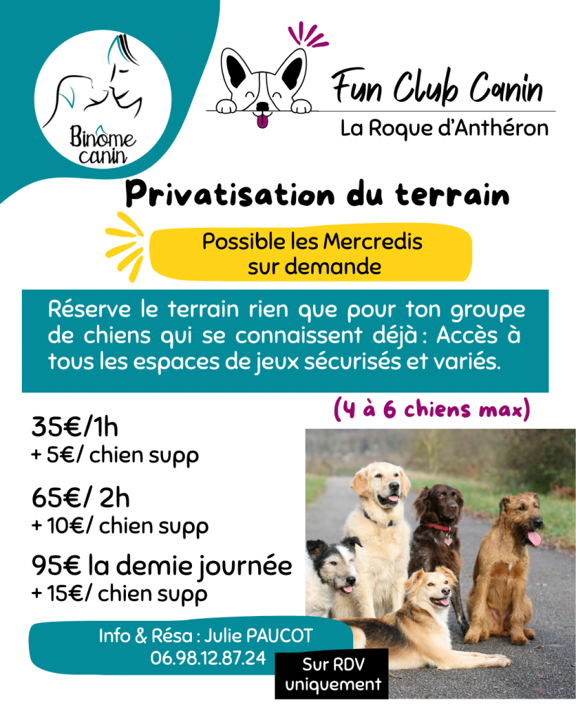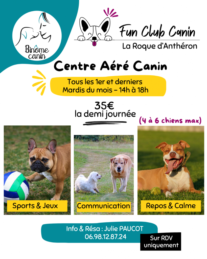 Bienvenue au Fun Club Canin, un espace pour ton quatre pattes en Provence qui mêle éducation, loisirs et sports canins dans un cadre fun et bienveillant. Ici, tout est pensé pour ton chien et pour toi :